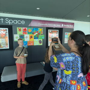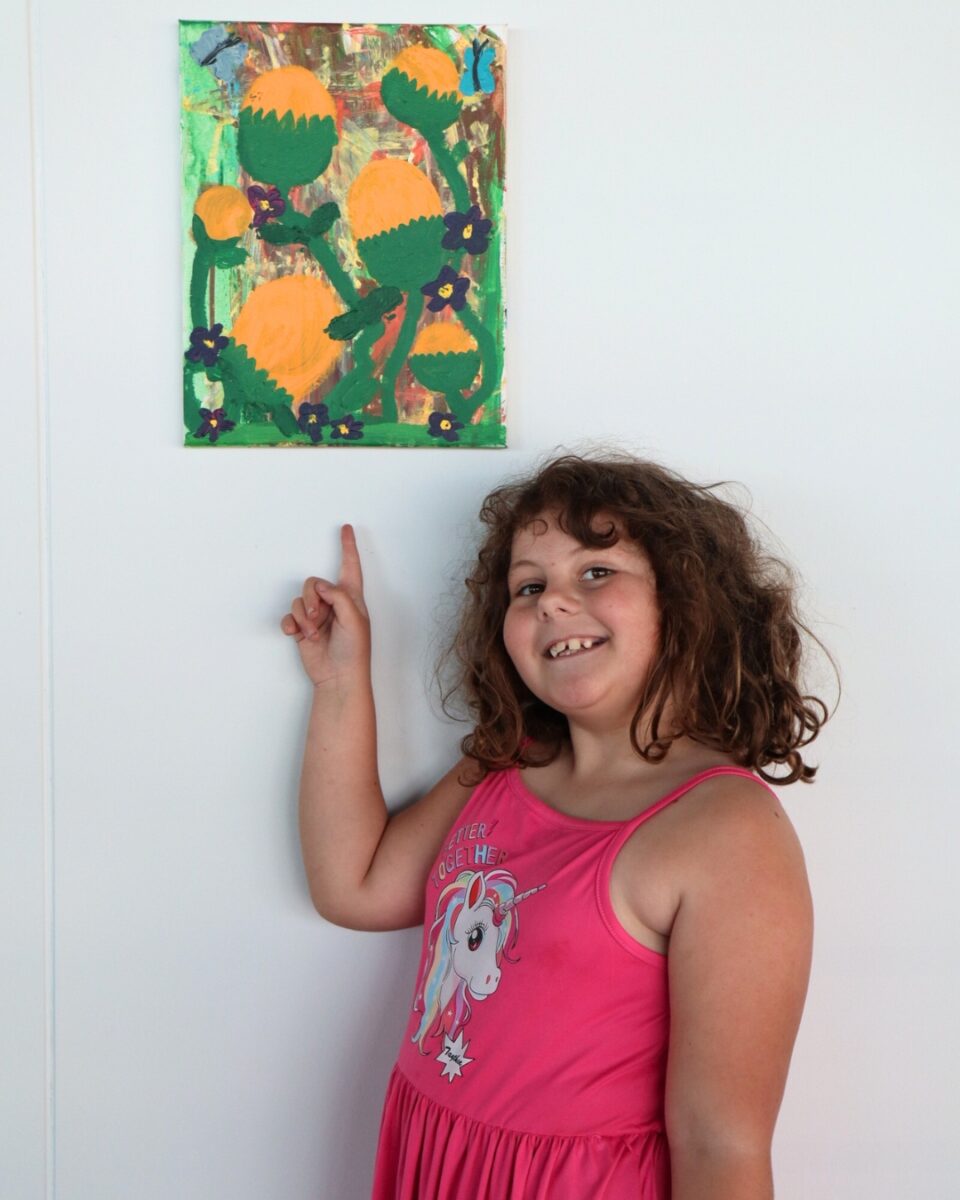 BLOOM features a stunning collection of works exploring mindfulness, well-being, and creative expression — from gestural acrylics inspired by Banksia woodlands to vibrant Matisse-style collages in the “Growing Gardens” series. Each piece reflects the individuality and imagination of its young creator.