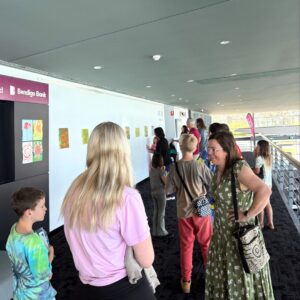 It was a joyful morning filled with laughter and pride as young artists, aged 8–16, spotted their own artworks displayed on the walls. The vibrant colours, giggles of excitement, and sense of achievement created an atmosphere of pure happiness throughout the gallery.