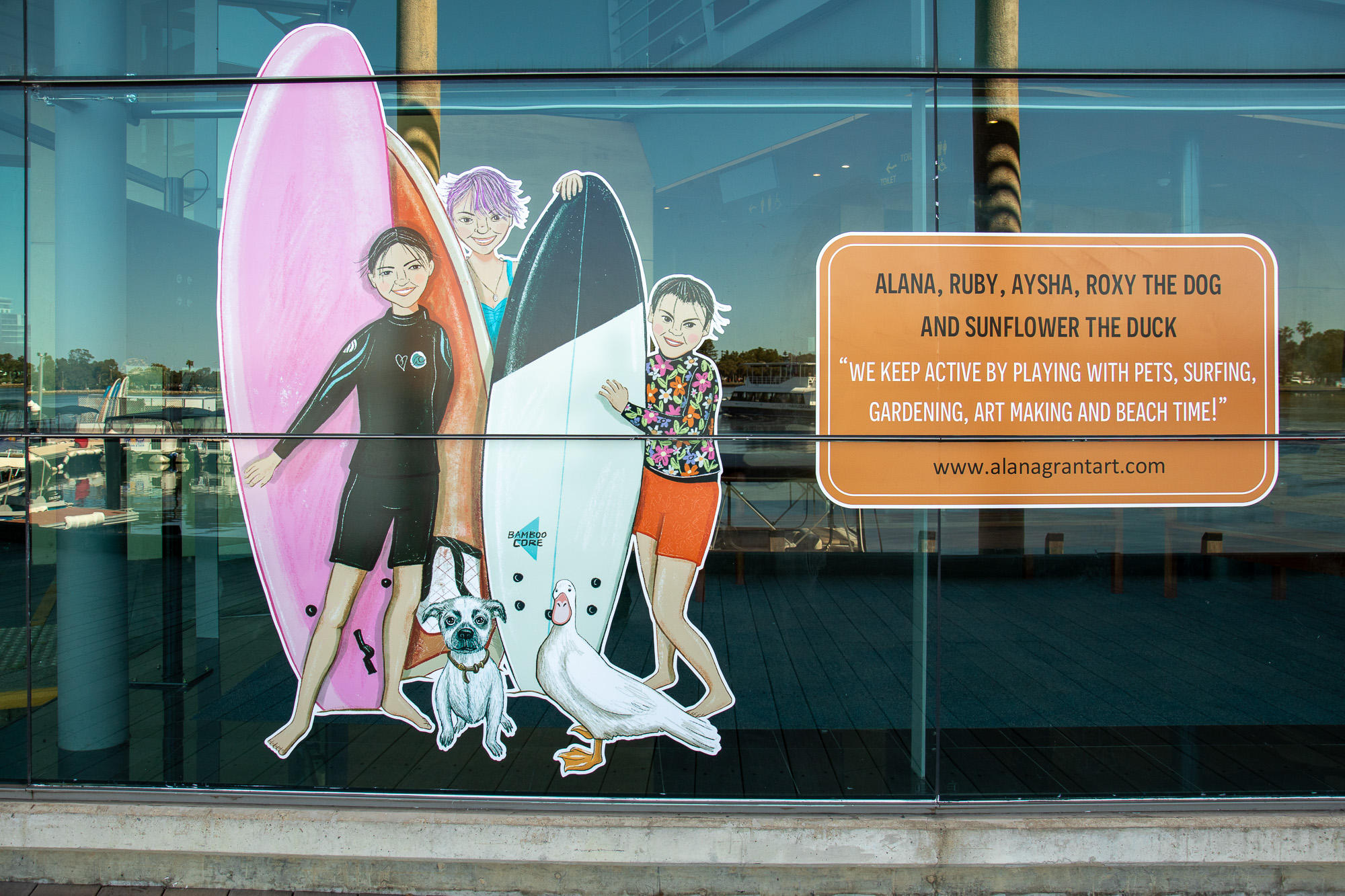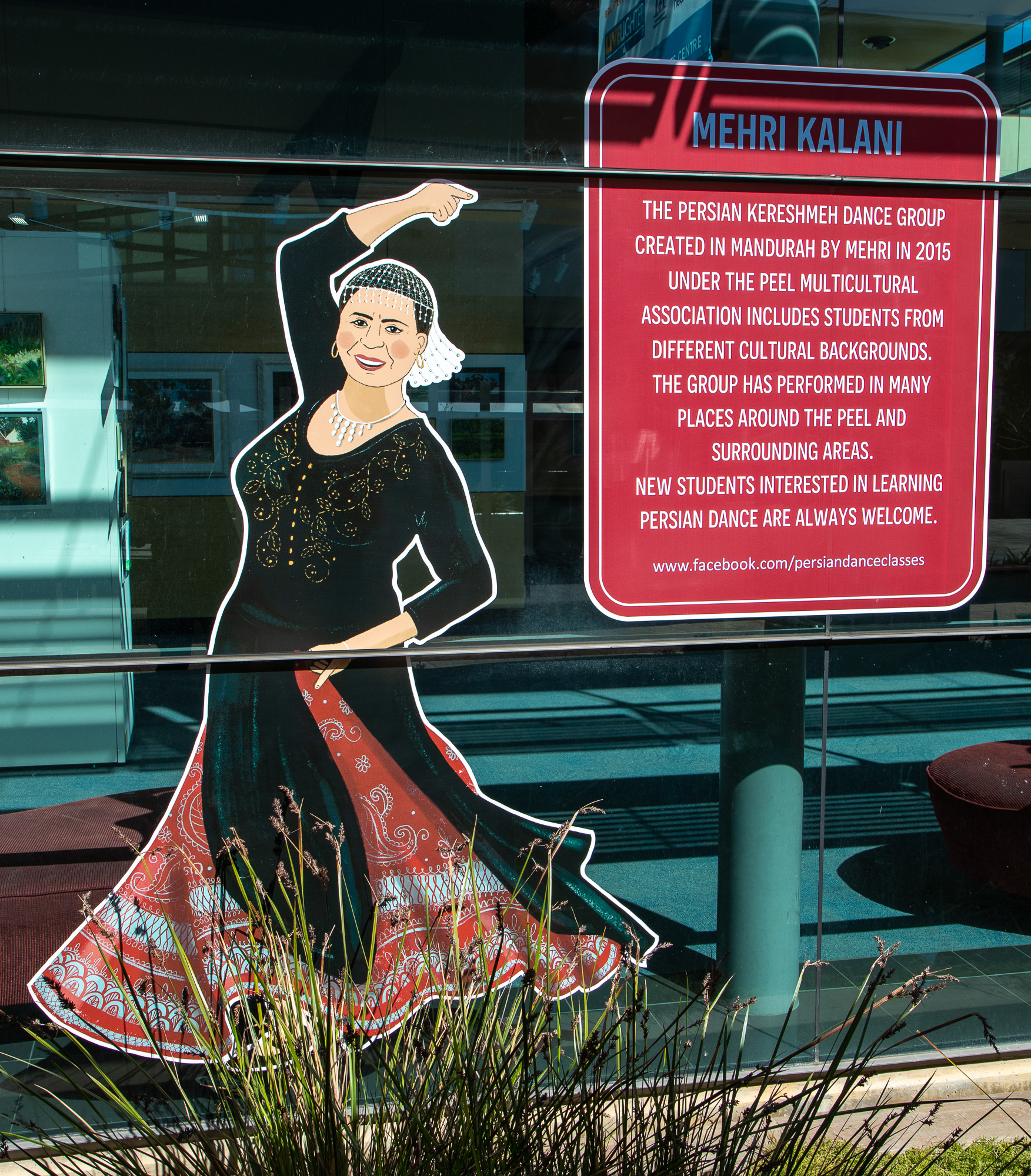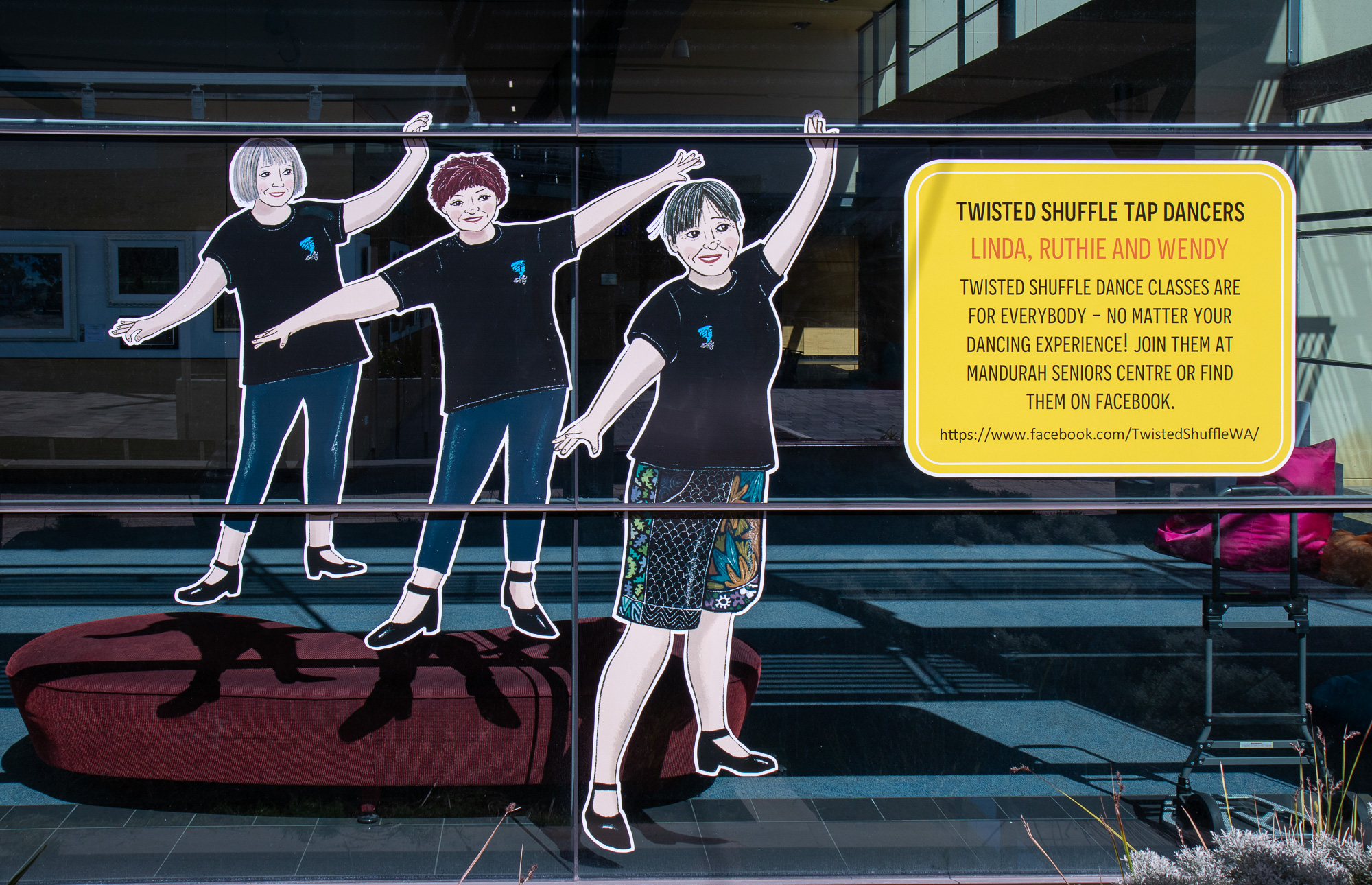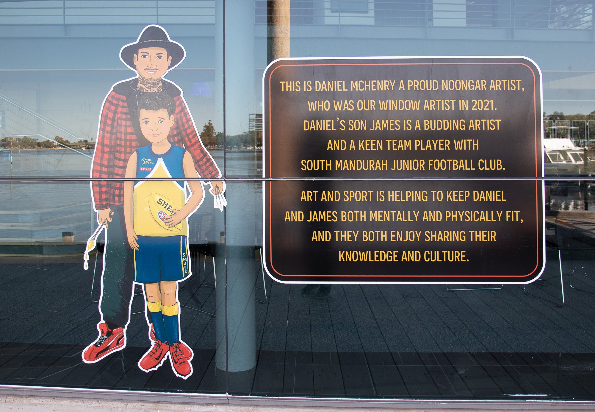 ElliĀ was commissioned to capture some of our colourful community members including Salty Daz, Twisted Shuffle, Solar Juice, Wiljen’s Adventures, Mandurah Swimming Club, Mandurah Dragon Boat Club, Persian Dance Classes, Mandurah Plein Air Artists (Inc), City of Mandurah, Visit Mandurah for our Spring 2022 window art installation entitled ‘Know Your Neighbourhood’.