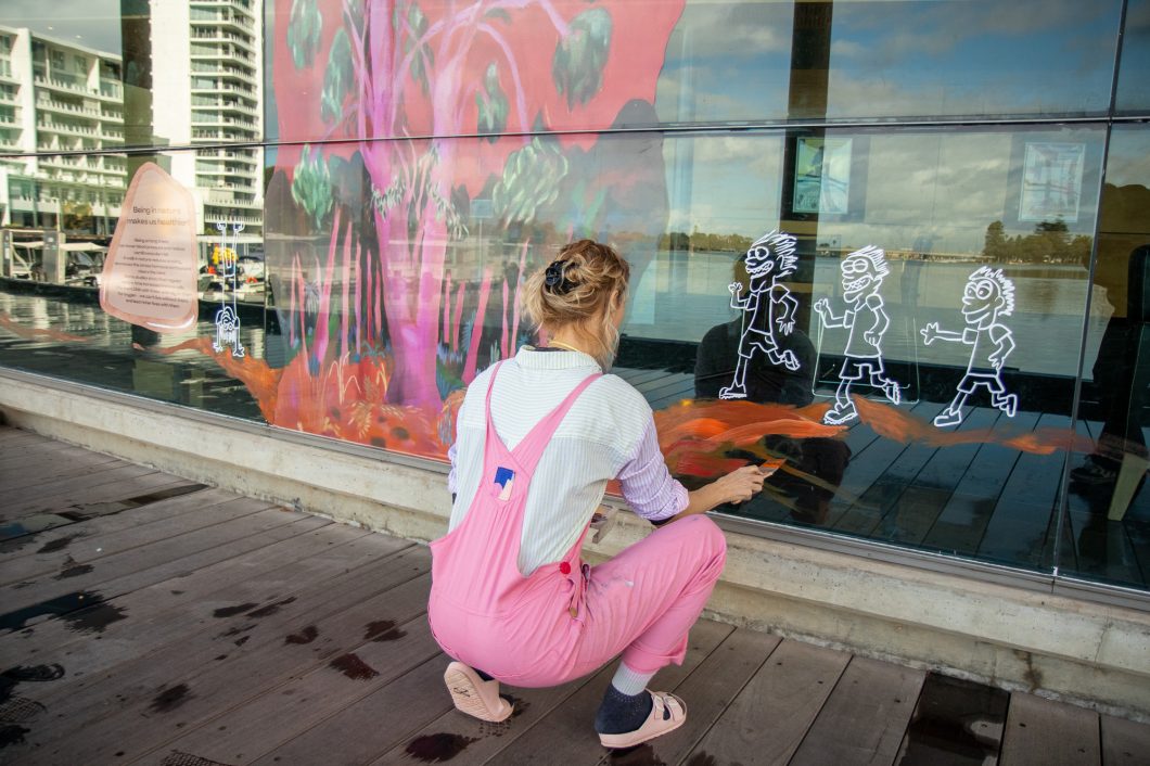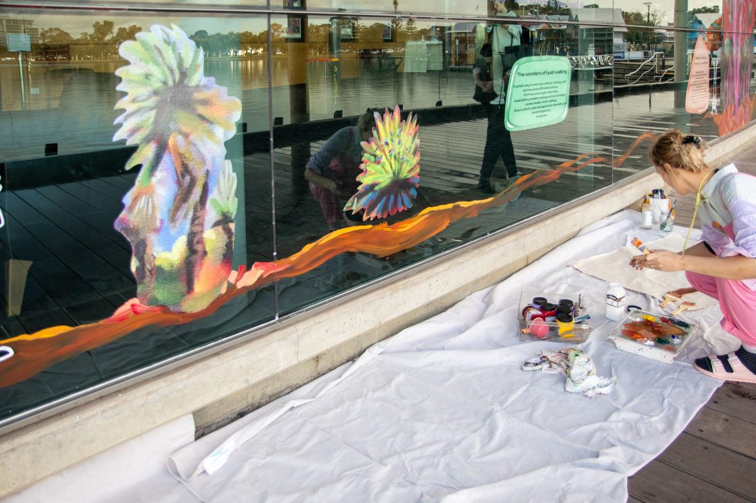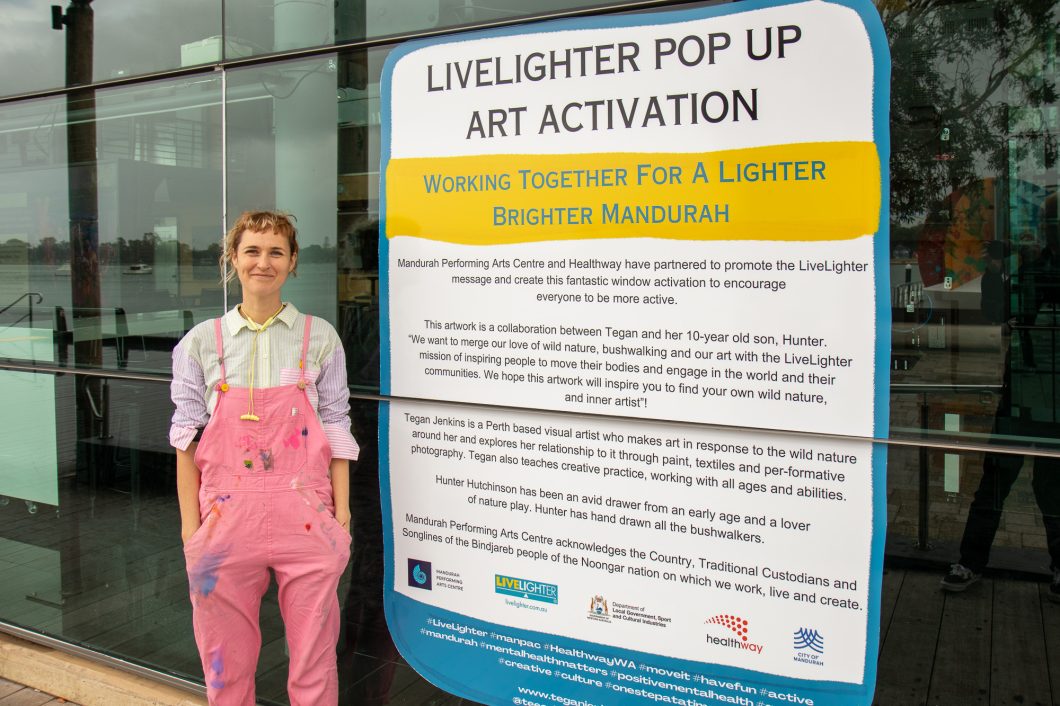 Our new window art has been unveiled! In conjunction with Heathway, Mandurah Performing Arts centre commissioned Perth visual artist Tegan Jenkins, along with her ten year old son Hunter, to explore their love of nature and encourage everyone to be more active.