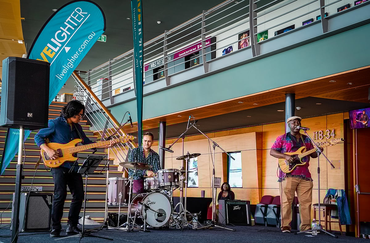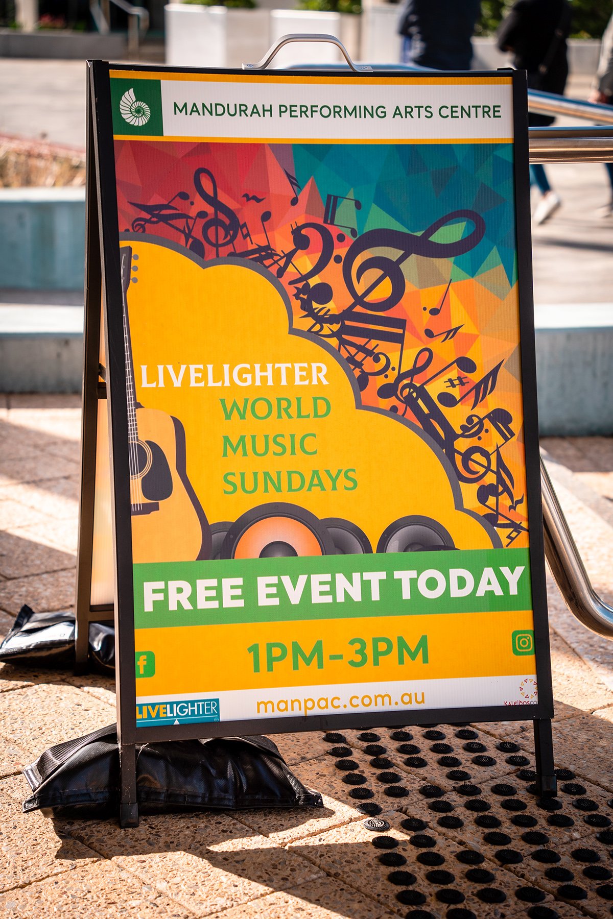 Originally from Mozambique, Mahamudo Selimane has toured the world for many years with his ground-breaking East African group Eyuphuro. He joined us for another free Livelighter World Music Sunday with joyful Mozambican rhythms and healthy snacks courtesy of Healthway, promoting the LiveLighter message, we are keen to support our community to change the food and physical activity environment.