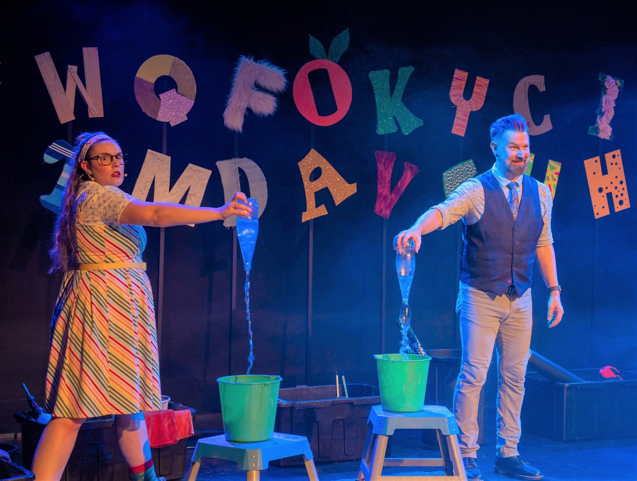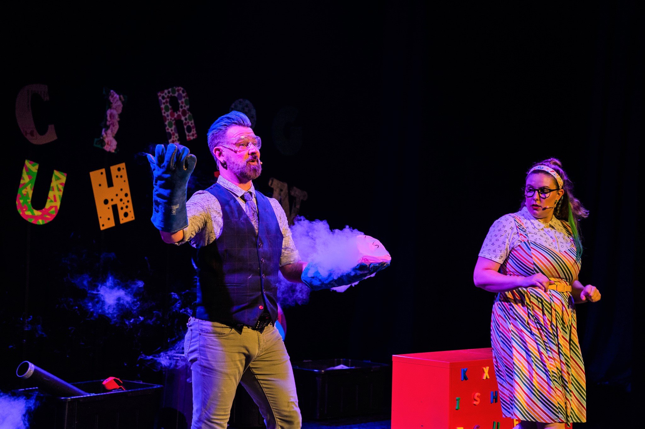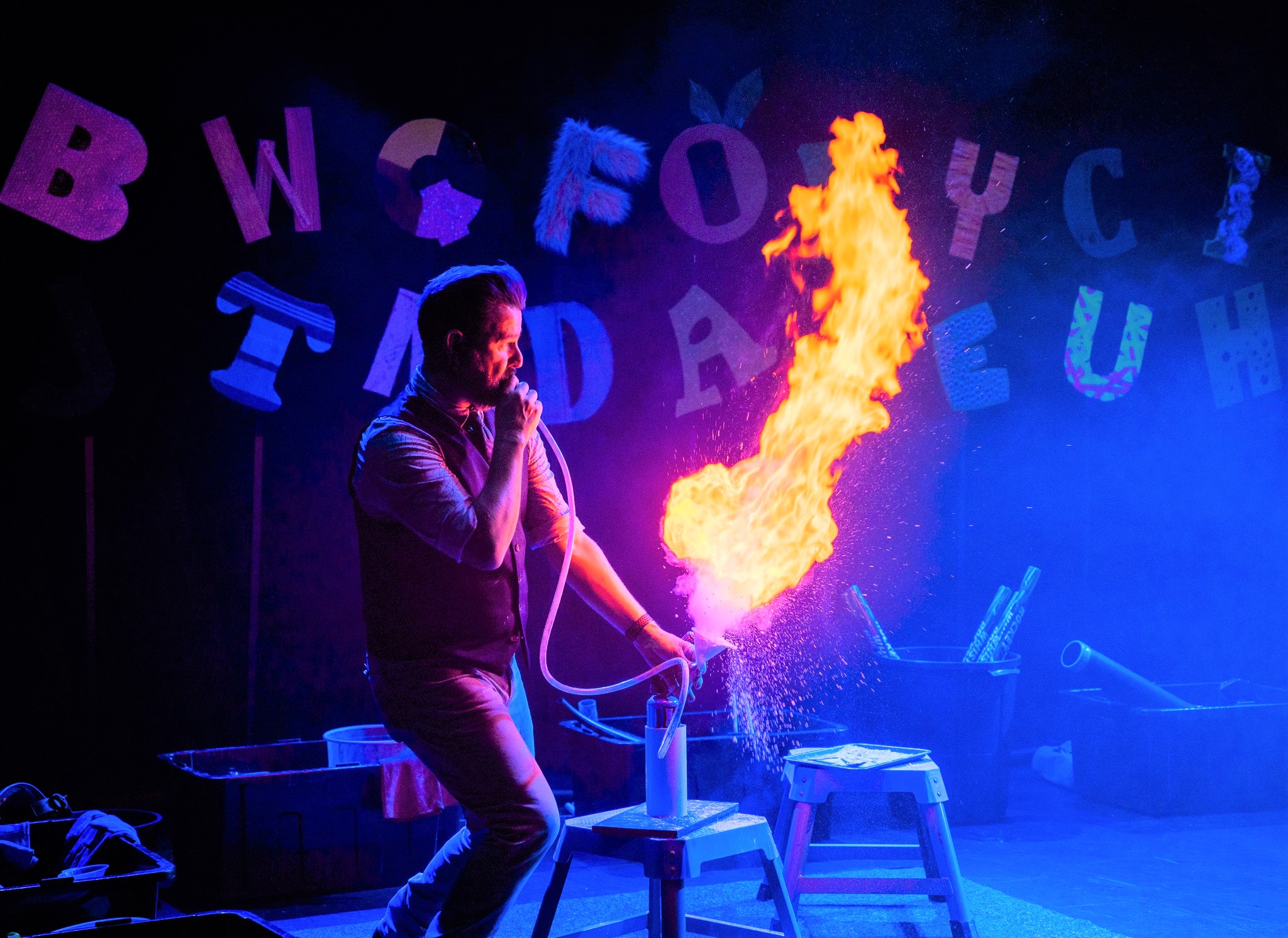 We know how hard it is to keep the kids entertained during the holidays so we were thrilled to bring The Alphabet of Awesome Science to the Fishtrap theatre for two sold out shows! What a spectacularly messy, entertaining and educational show it was too. Enjoy the photos below (courtesy of Mark Labrow Photography) and don’t forget to visit our EDUCATION page for lots more fun things for the kids coming soon.